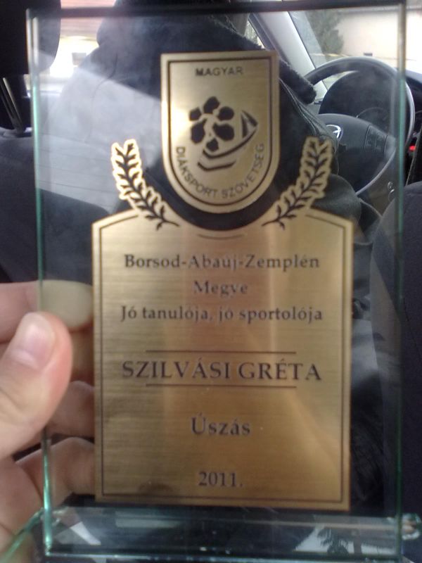Szilvási Gréta december 16-án pénteken a B.A.Z. megyei közgyűlés dísztermében vehette át a megyei közgyűlés alelnőkétől a "kövesdi" Csíger Lajostól a "Jó tanuló Jó sportoló" díjat. Számos meghívott vendég között a magyar kormány tagja is képviselte magát, többek között Martinek János 2-szeres olimpiai bajnok, államtitkár.